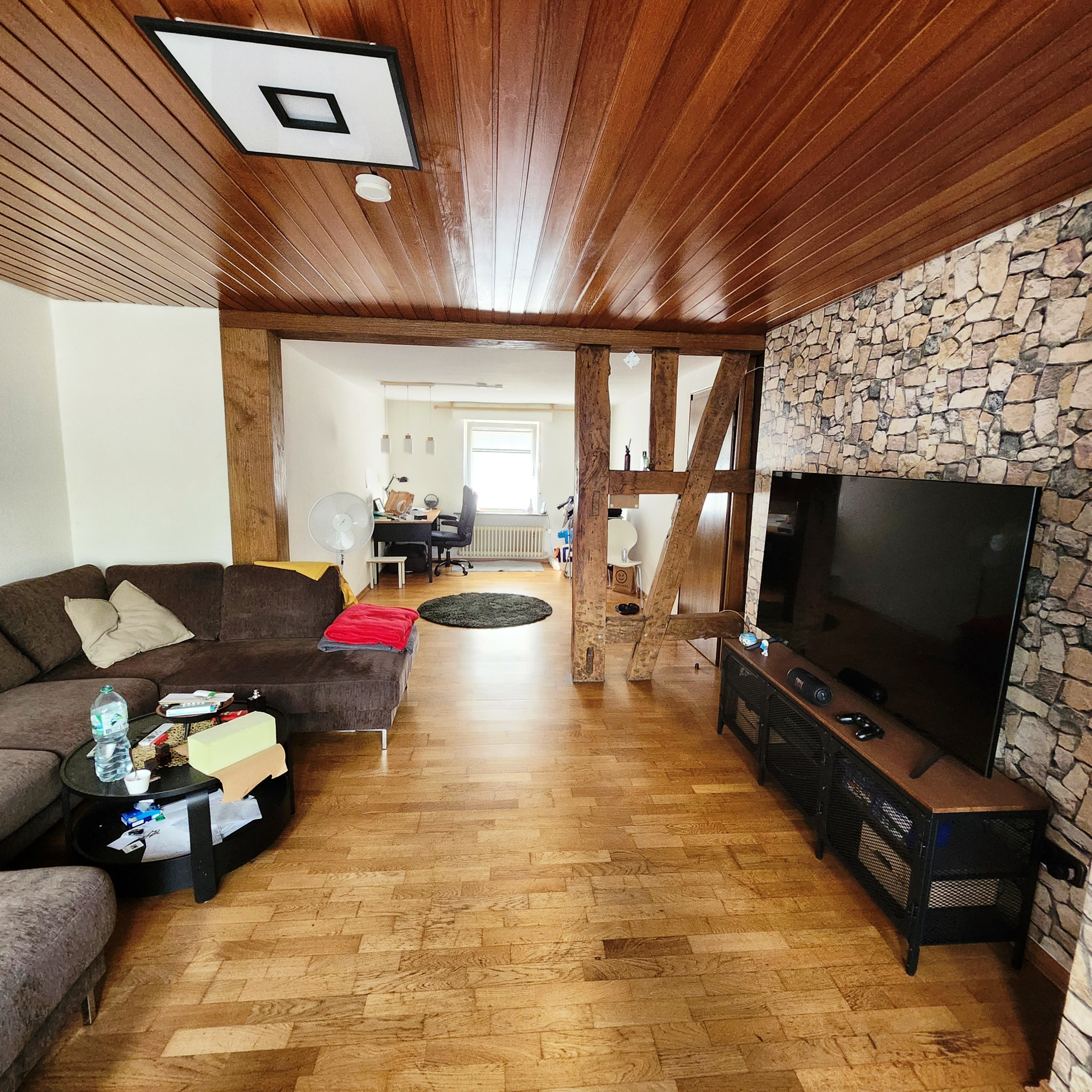 Die aktuelle Kaltmiete beträgt 750 € (EG: 450 €, 2. OG: 300 €). Für die leerstehende Wohnung im 1. OG ist eine marktgerechte Miete von rund 490 € realistisch. Das ergibt bei einer Netto-Gesamtmiete von mtl. 1.240,00 € ein interessantes Renditepotenzial bei moderater Investition.